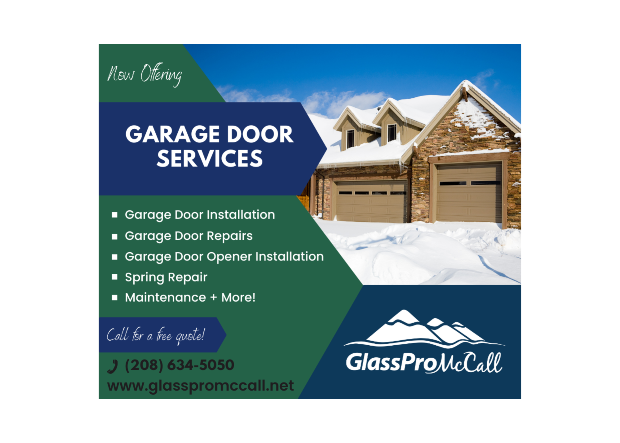 We focus on quality products, precision installation, and reliable garage door systems built to perform in McCall’s mountain climate. Serving McCall, Donnelly, Cascade, and New Meadows. Garage Door Guy is a division of Glass Pro McCall.