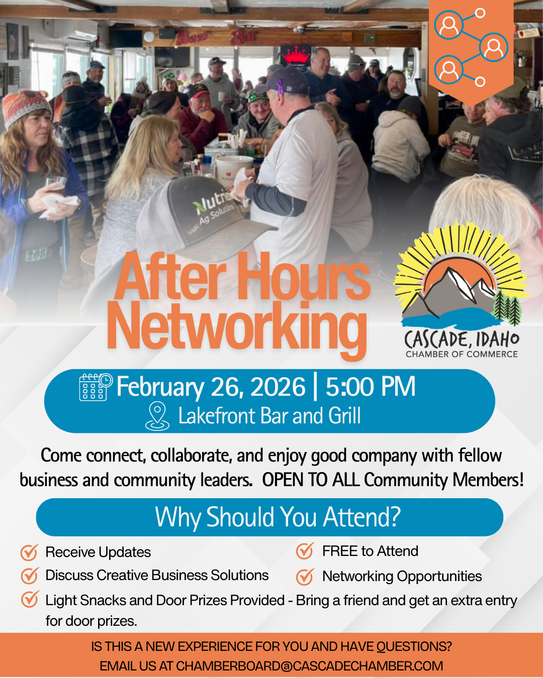 Come meet our new Board Members as well and connect further on all the good things we have happening in the City of Cascade, too much to share here! Stay tuned for our monthly event schedule for after hours and coffee chats, providing time and days of the week that are different to hopefully allow more opportunities to connect with other chamber members.