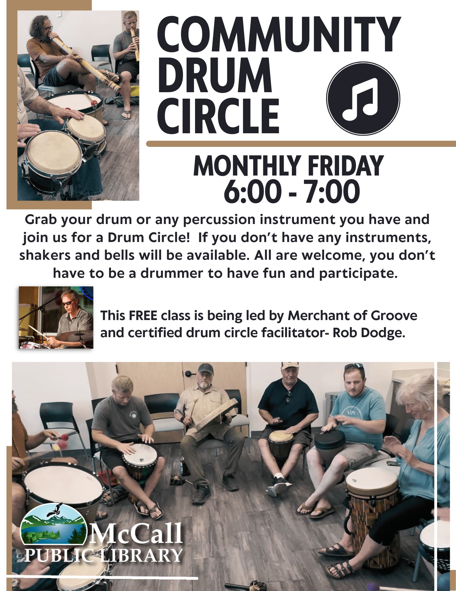 Grab your drum or any percussion instrument you have and join us! All are welcome, you don’t have to be a drummer to have fun and participate. This class is being lef by Merchant of Groove and certified drum circle facilitator – Rob.