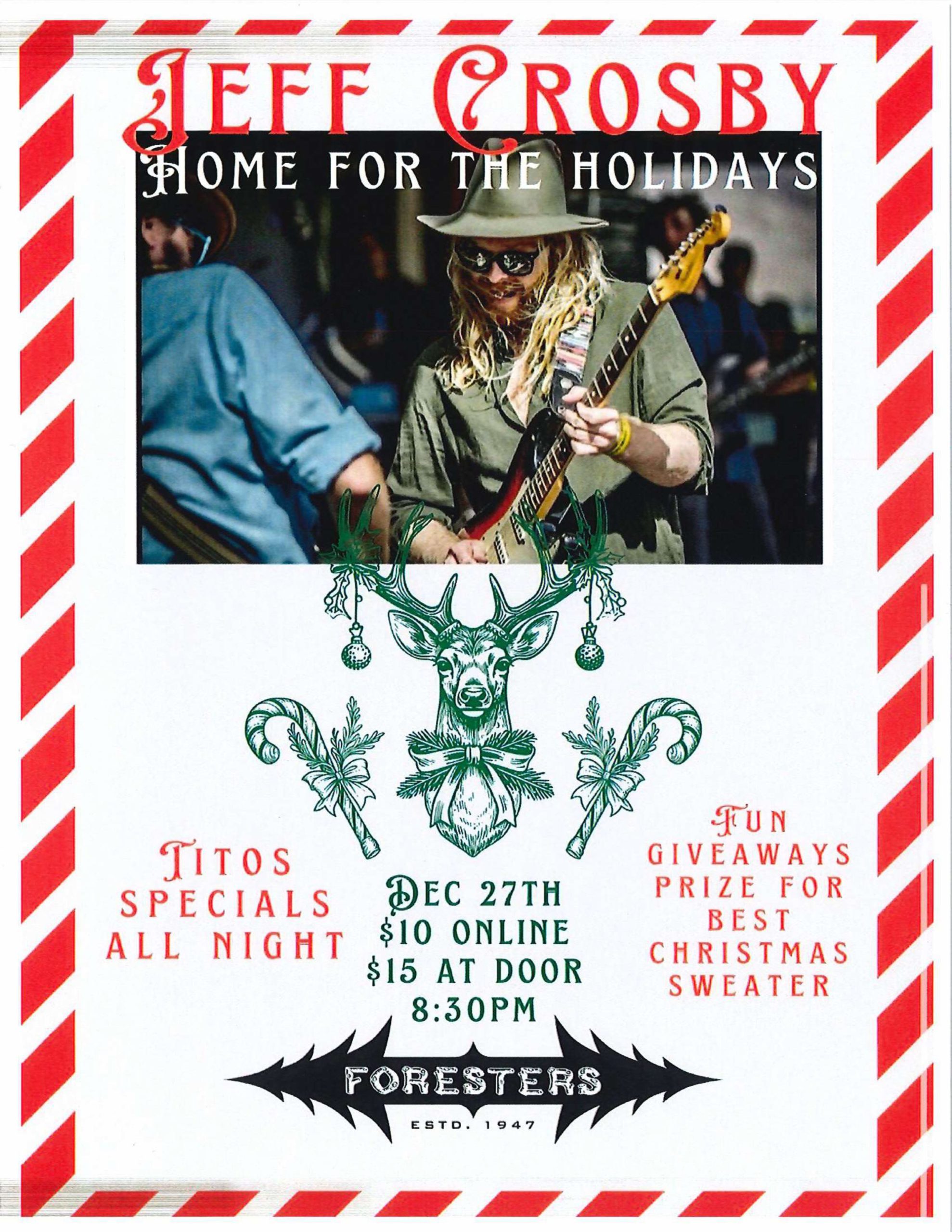 Jeff Crosby is Home for the Holidays – come see him at Foresters on December 27th at 8:30pm.