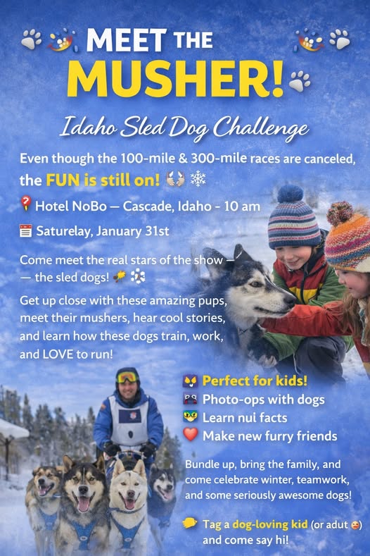 Come down to Hotel NoBo in Cascade to meet the real stars of the Idaho Sled Dog Challenge – the sled dogs!