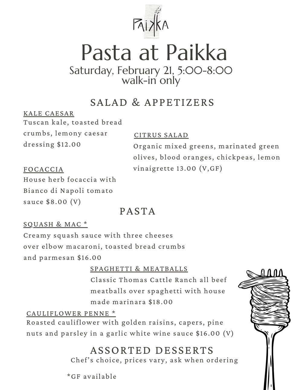 Saturday, February 21, 5:00 – 8:00 – walk-in only