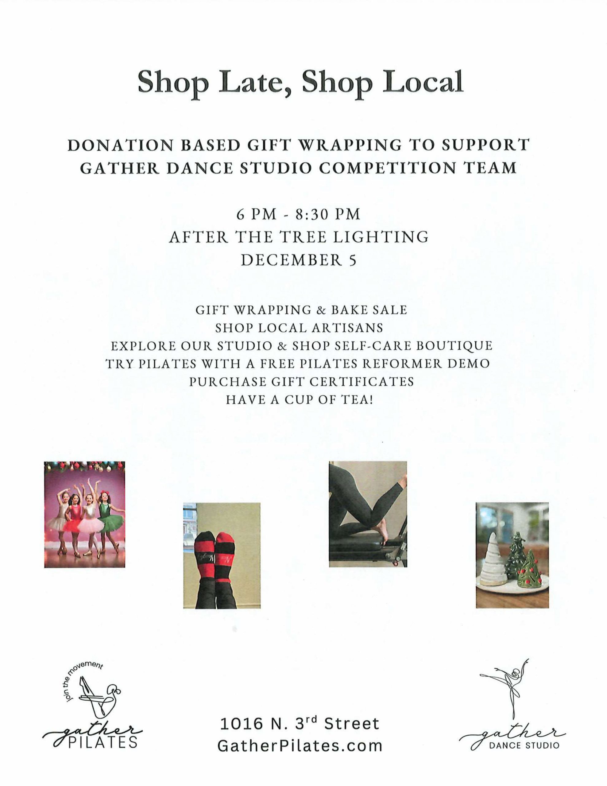 Head over to Gather Pilates and Gather Dance Studio after the McCall Tree Lighting and take advantage of their donation-based gift wrapping to support the dance competition team!