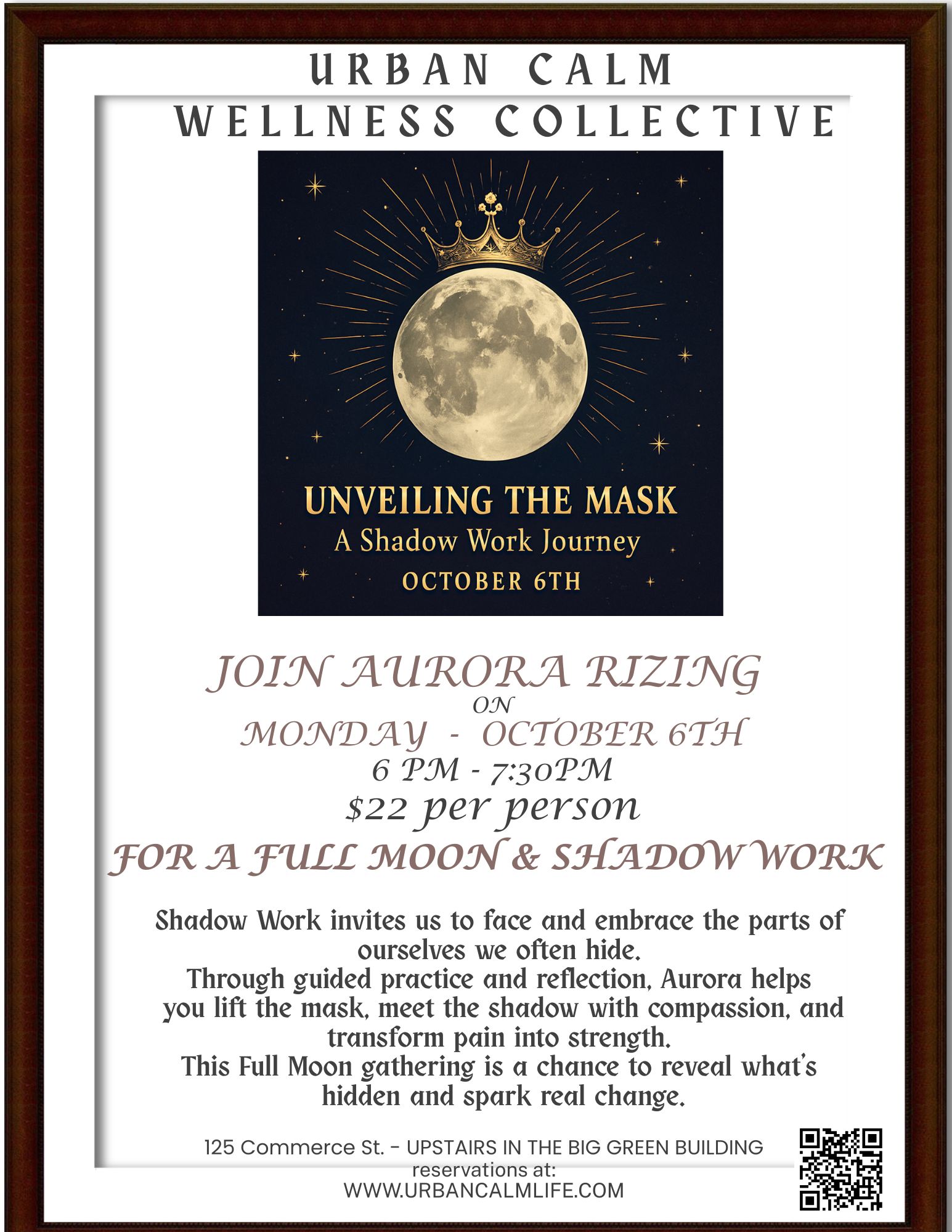 | $22Join the Urban Calm Wellness Collective and Aurora Rizing for a Full Moon & Shadow Work Class on Monday, Oct. 6th from 6-7:30pm.