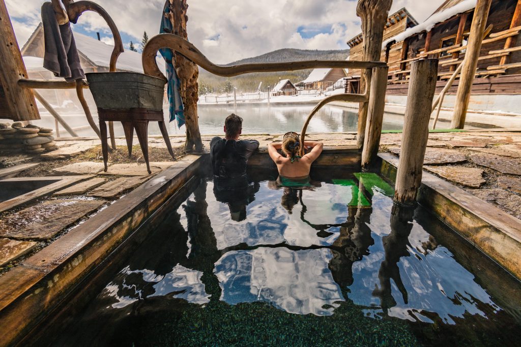 Step back in time at this rustic resort surrounded by the Payette National Forest. Natural mineral water flows into large sandy-bottom pool about five feet deep. You can also enjoy two small “hot pools,” a shallow area for the kids and a bathtub for one overlooking a meadow. Open year round, but accessible only by snowmobile in the winter.